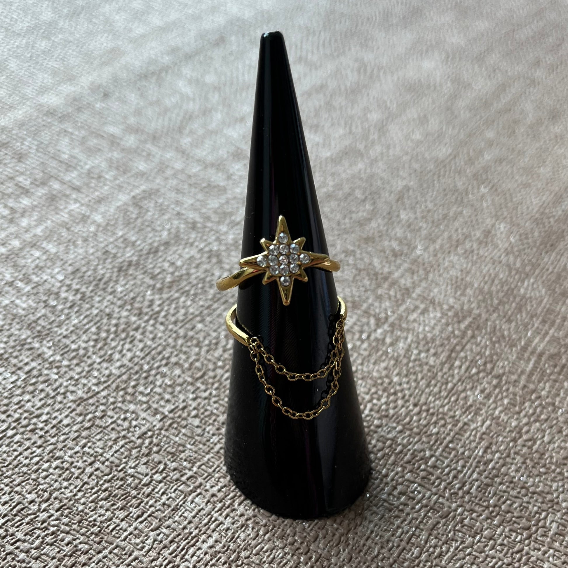 La bague Célestia est en acier inoxydable, un matériau durable qui ne noircit pas et résiste à l’eau.