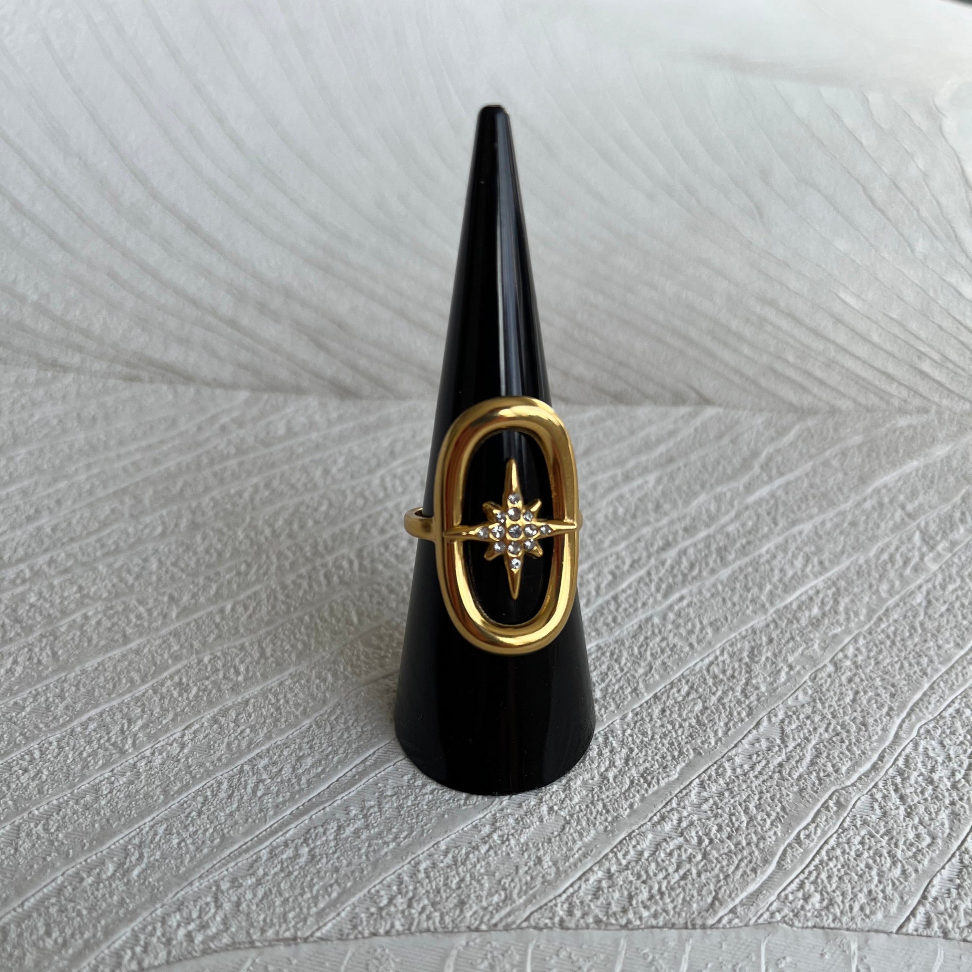 La bague Astra est en acier inoxydable, un matériau durable qui ne noircit pas et résiste à l’eau.