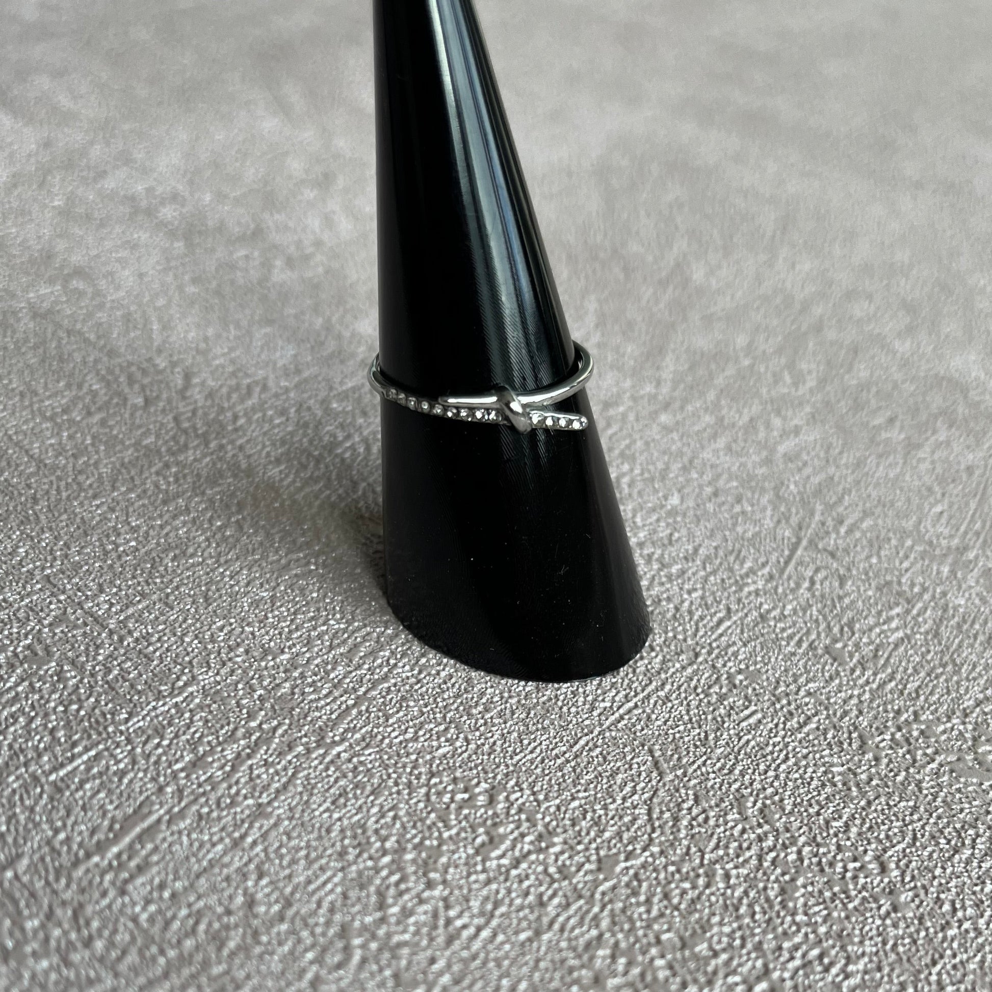 La bague Ecclésia est en acier inoxydable, un matériau durable qui ne noircit pas et résiste à l’eau.