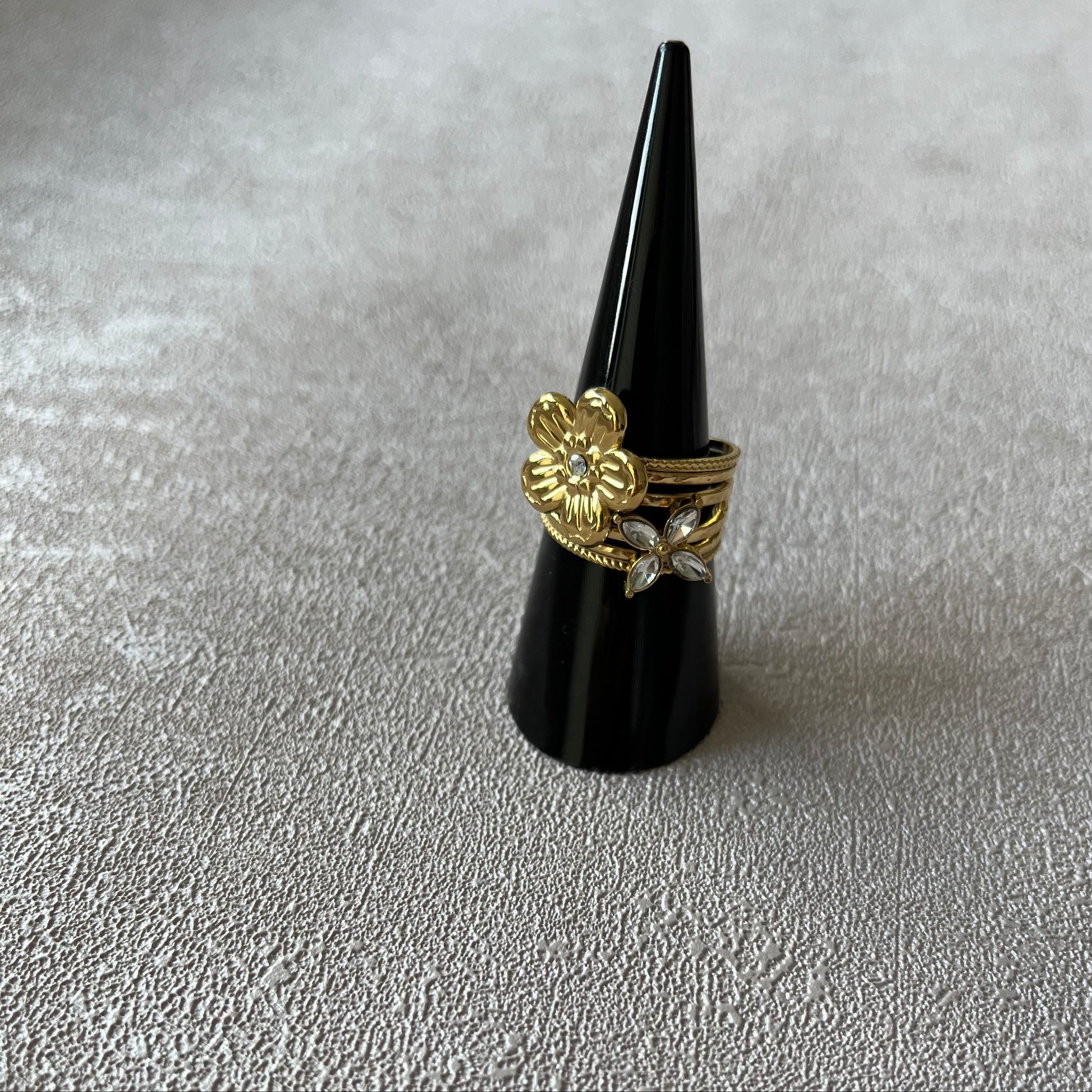 La bague Garden Party est en acier inoxydable, un matériau durable qui ne noircit pas et résiste à l’eau.
