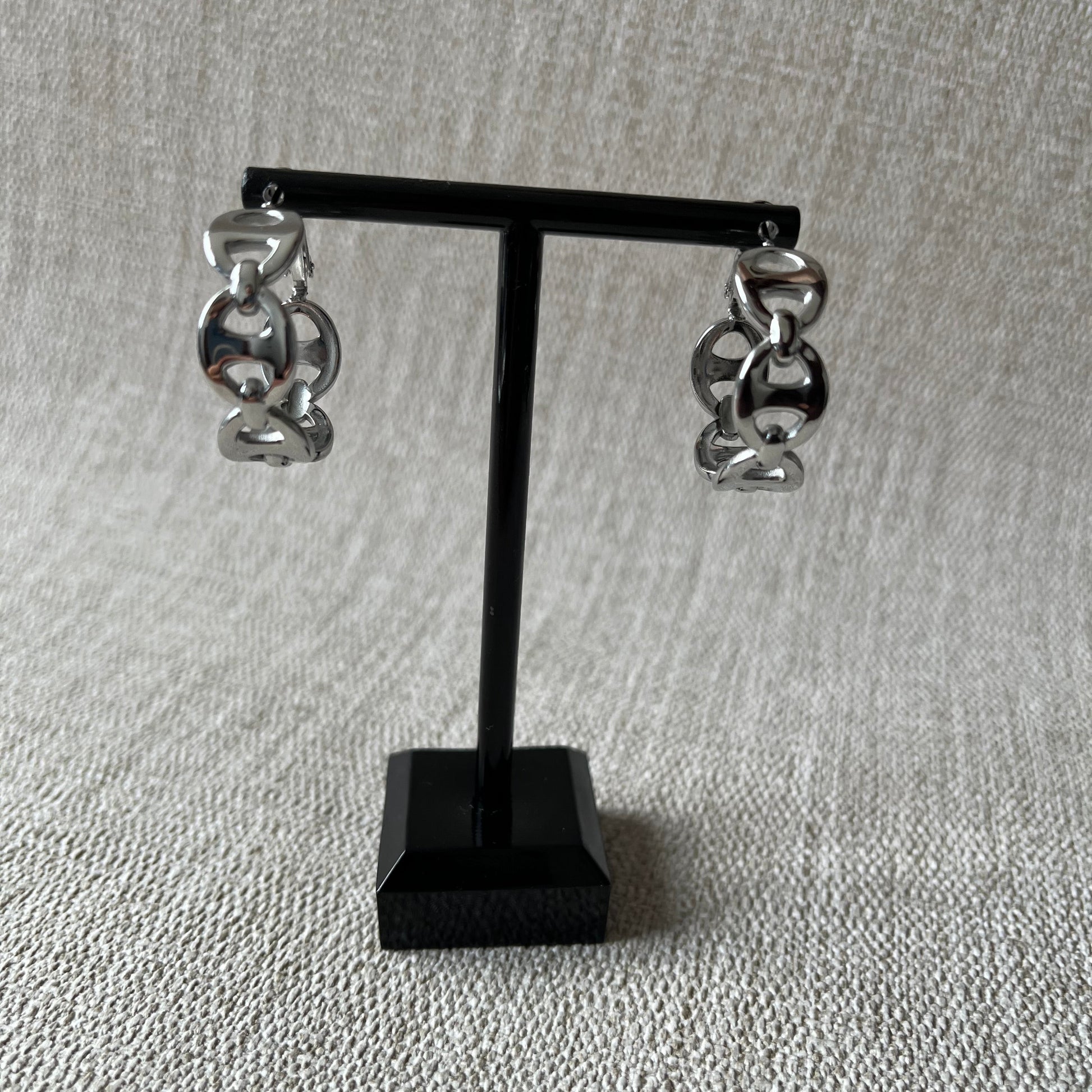 Découvrez les boucles d'oreilles Les marines en acier inoxydable 304, créoles avec mailles marines. Parfait pour un usage quotidien, ces boucles d'oreilles résistantes à l’eau s’adapte à tous vos styles.