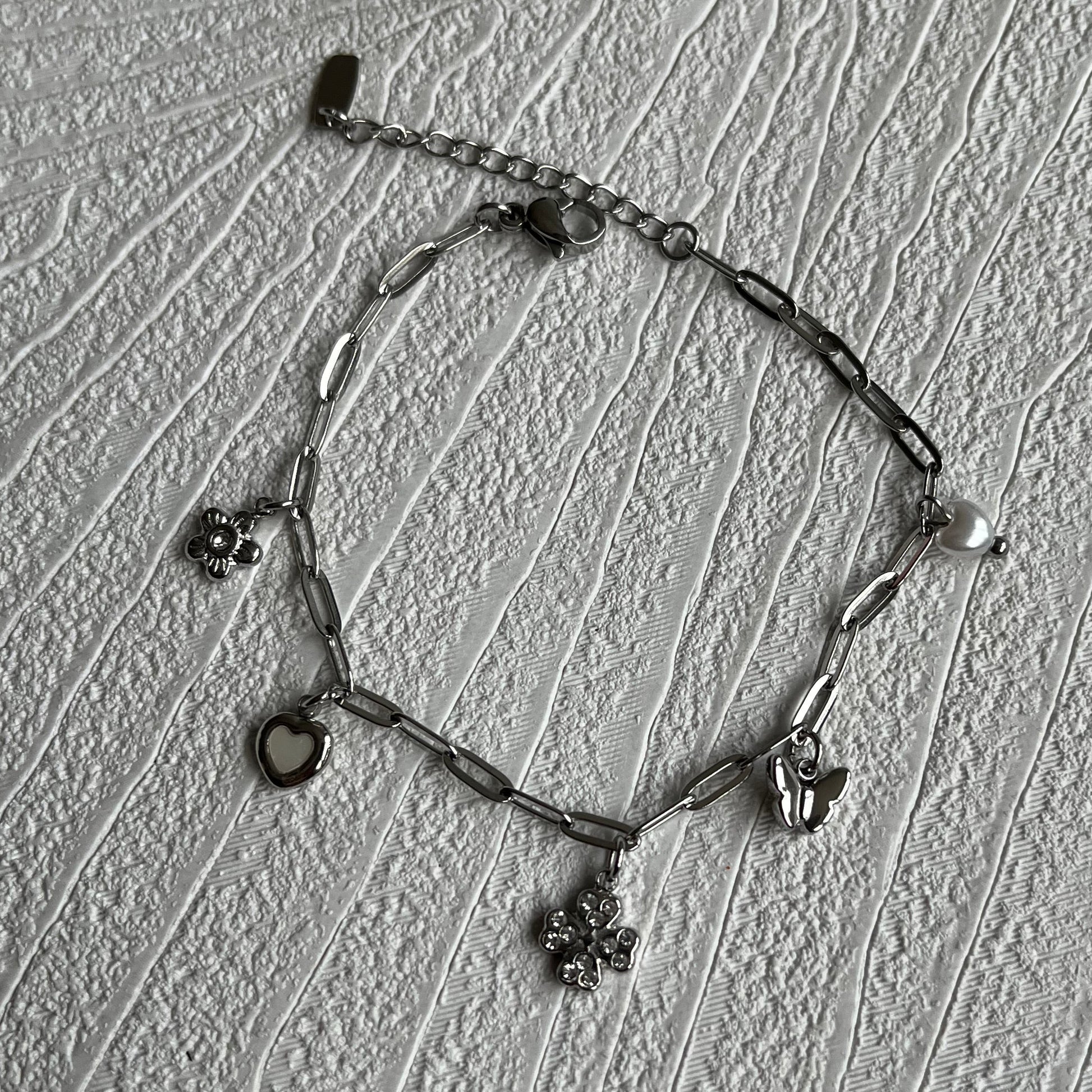 Le bracelet Clémence est en acier inoxydable, un matériau durable qui ne noircit pas et résiste à l’eau.