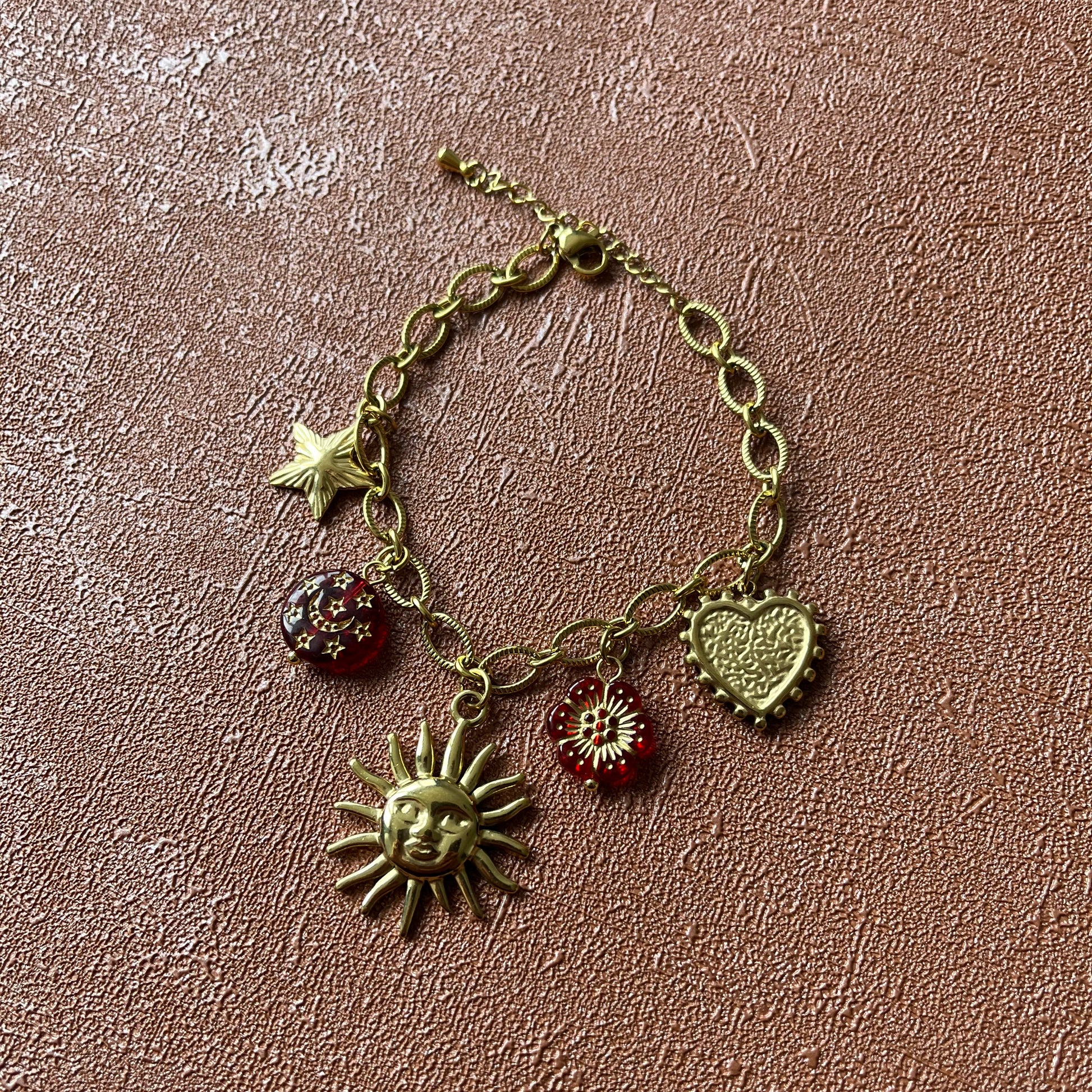 Découvrez le bracelet doré Julya en acier inoxydable 304, avec ses grosses breloques dans les tons rouges. Parfait pour un usage quotidien, ce bracelet résistant à l’eau s’adapte à tous vos styles.