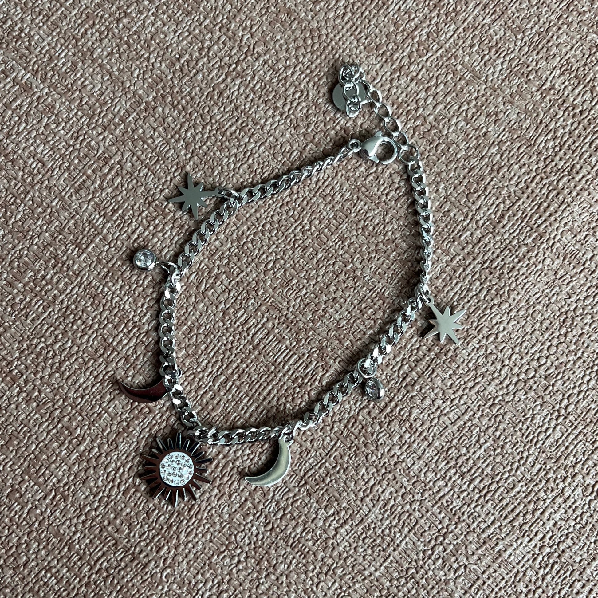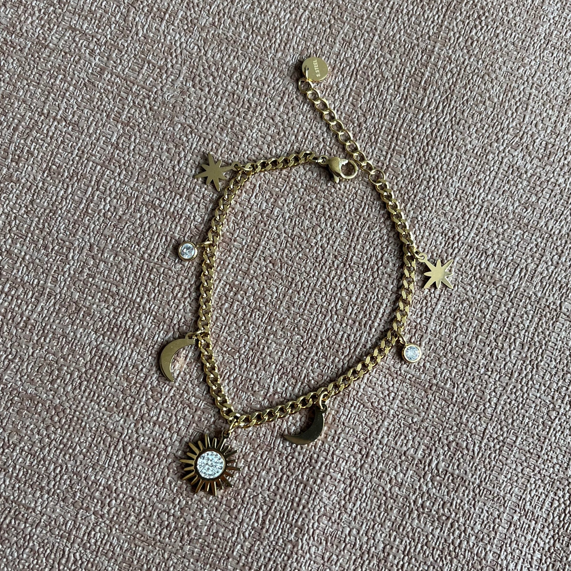Le bracelet Univers Solaire est en acier inoxydable, un matériau durable qui ne noircit pas et résiste à l’eau.