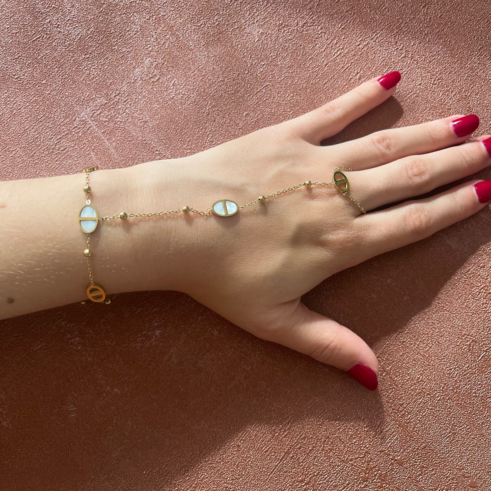 Découvrez la chaine de main doré Elégance en acier inoxydable 304, avec son style très élégant composé de maille marine et d'une chaine perlée . Parfait pour un usage quotidien, ce bracelet résistant à l’eau s’adapte à tous vos styles.