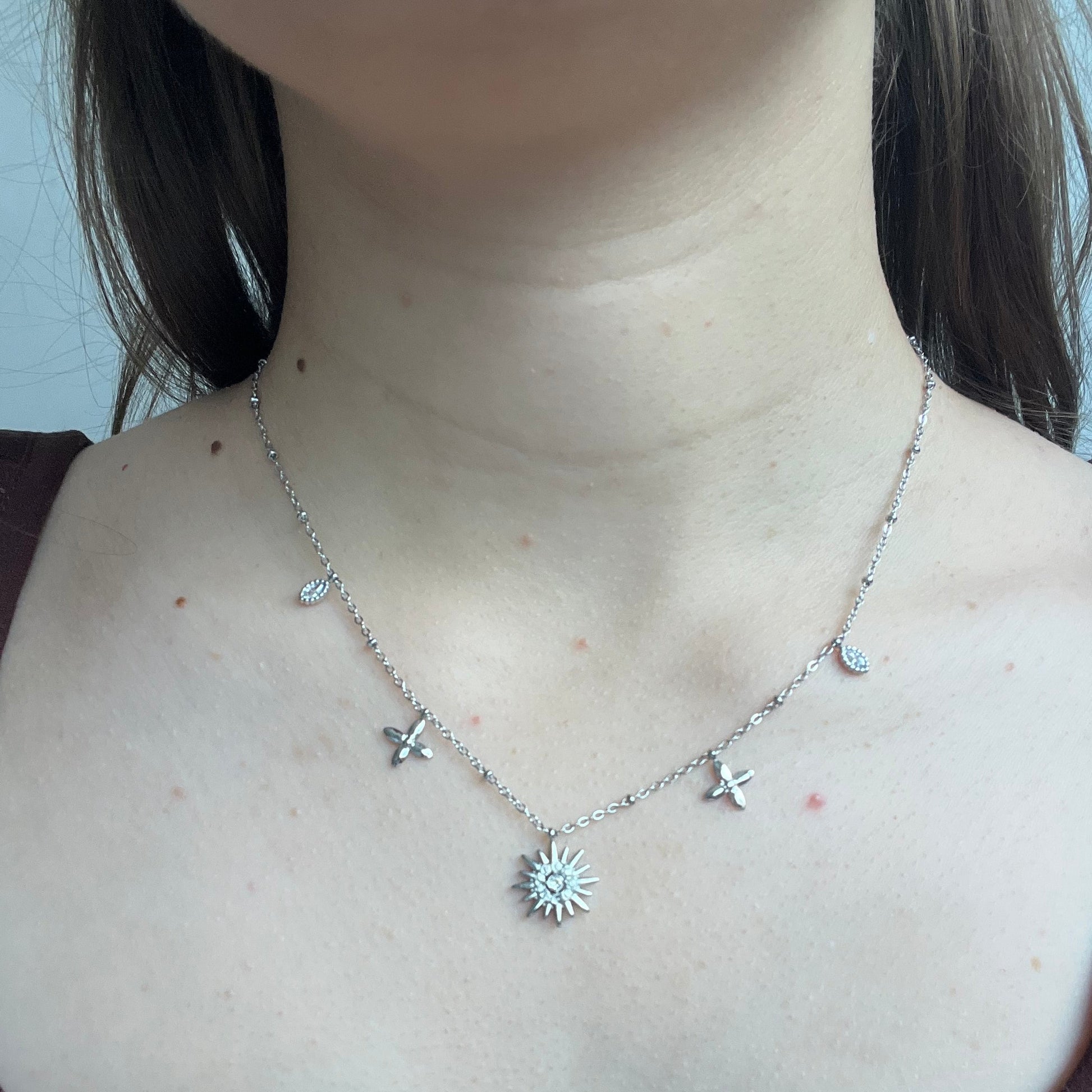 Découvrez le collier Andréa en acier inoxydable 316, un collier délicat qui habille le cou avec ses breloques fines. Parfait pour un usage quotidien, ce collier résistant à l’eau s’adapte à tous vos styles. Disponible en doré et argenté.