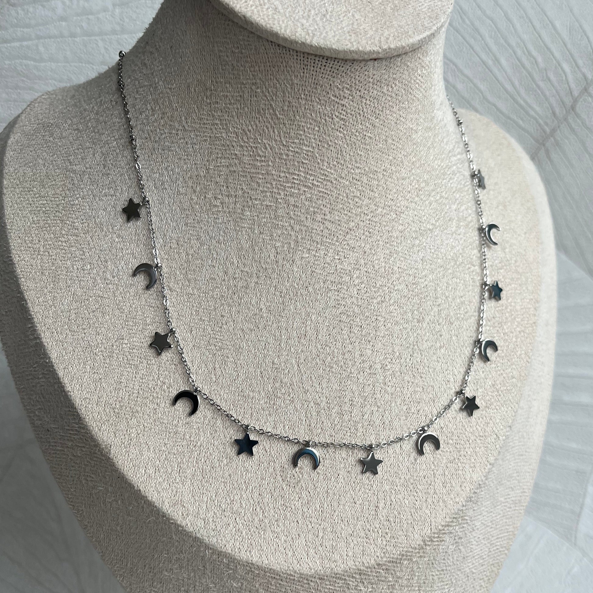 Le collier Eléonore est en acier inoxydable, un matériau durable qui ne noircit pas et résiste à l’eau.