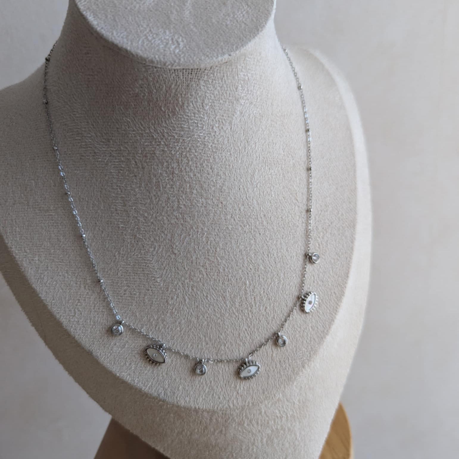 Découvrez notre magnifique collier oeil protecteur et strass en acier inoxydable, alliant style et durabilité.