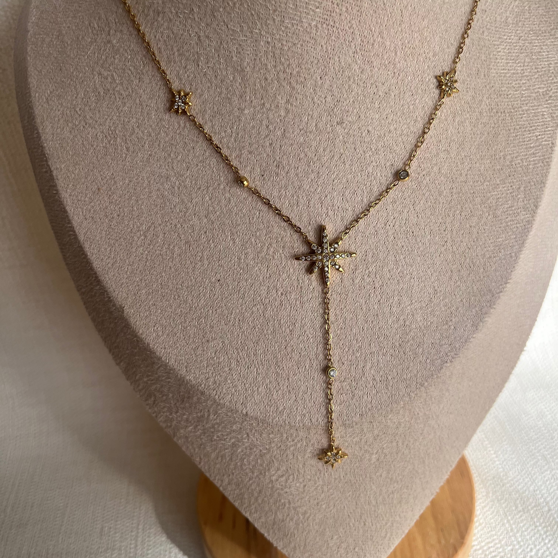 Découvrez le collier Star en acier inoxydable 316, un collier en Y délicat avec étoiles et strass . Parfait pour un usage quotidien, ce collier résistant à l’eau s’adapte à tous vos styles. Disponible en dorée et argenté.
