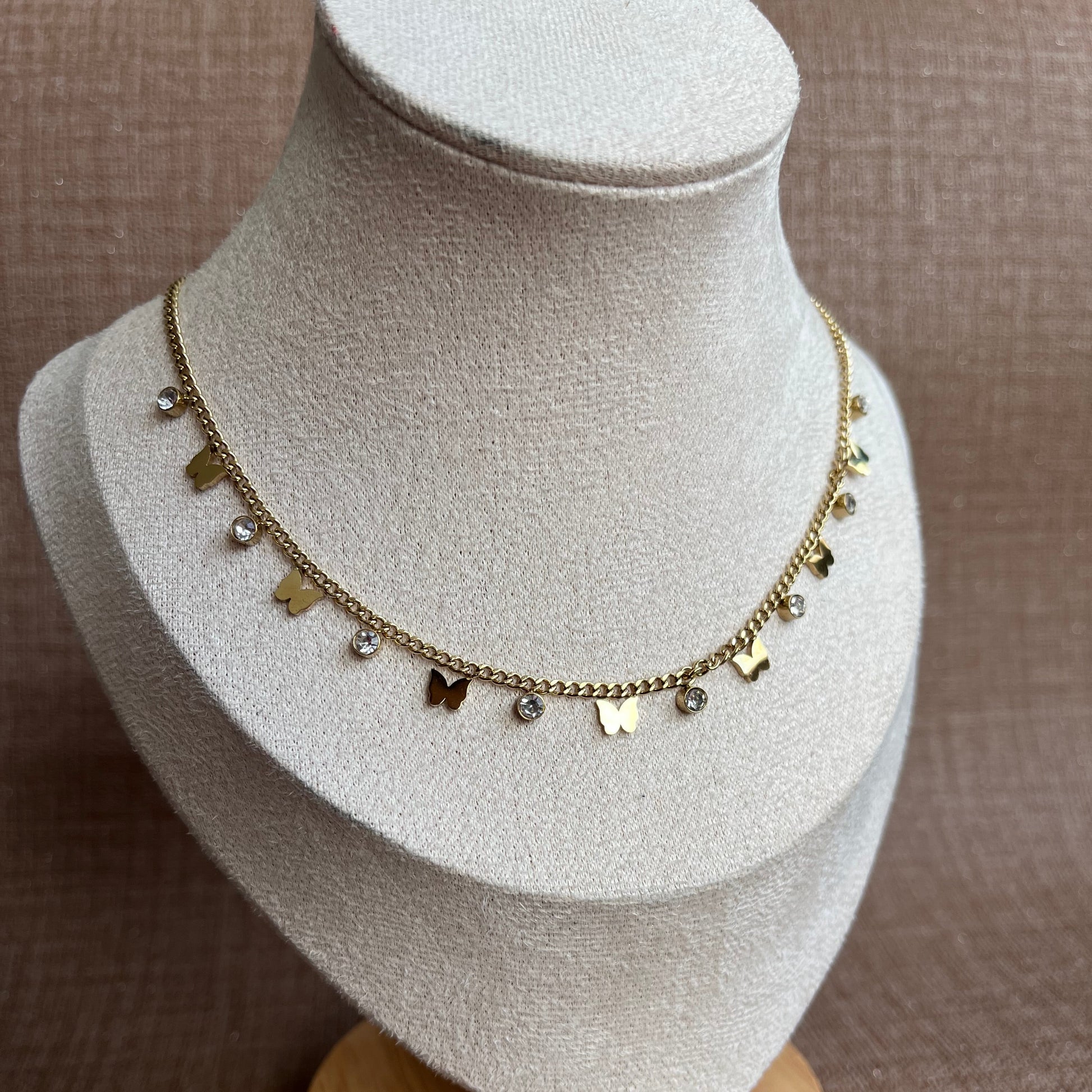 Le collier Vanessa est en acier inoxydable, un matériau durable qui ne noircit pas et résiste à l’eau.